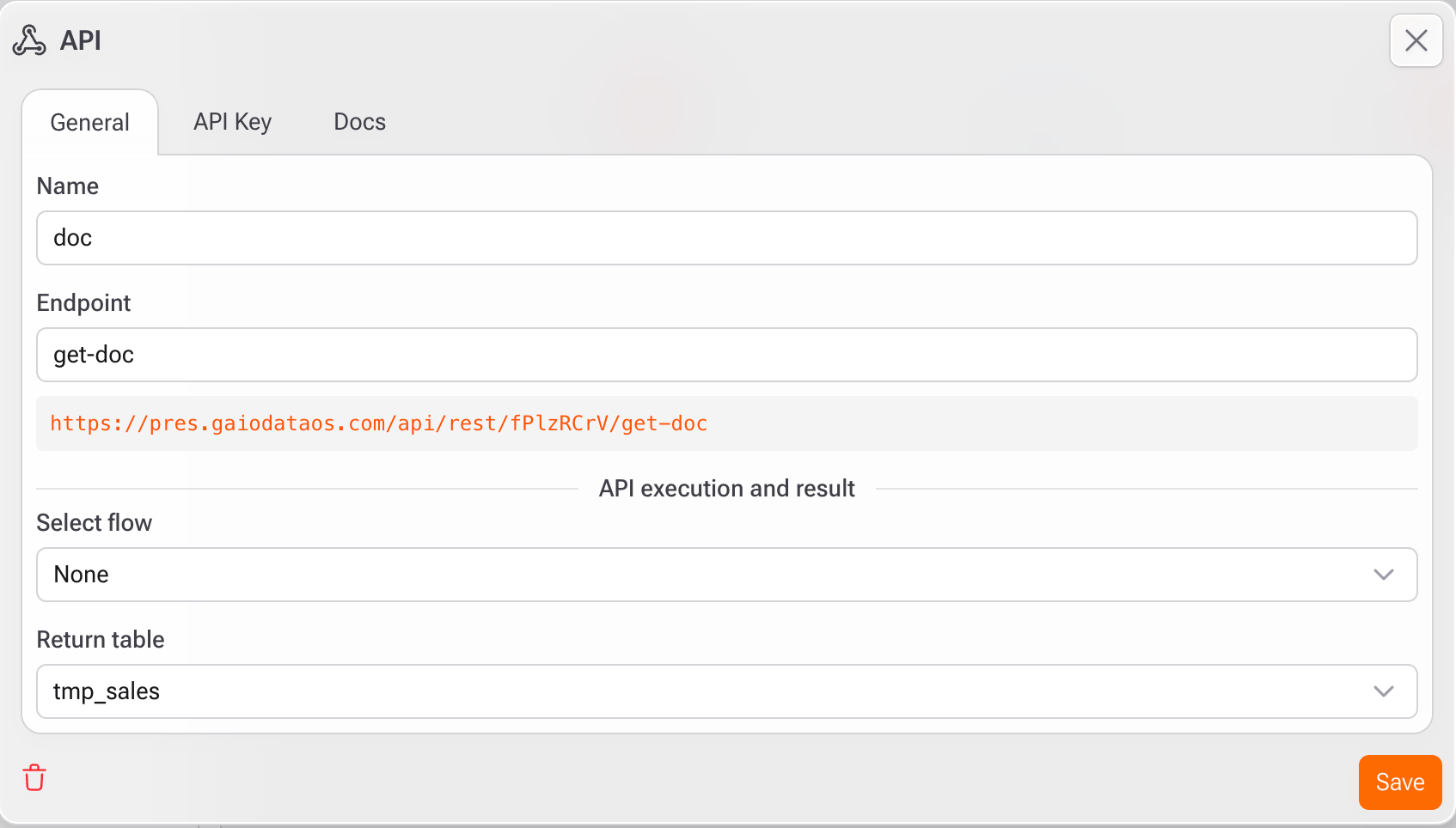 4. Selecionar fluxo (opcional: Selecione o flow do Gaio que será executado quando a API for chamada.
