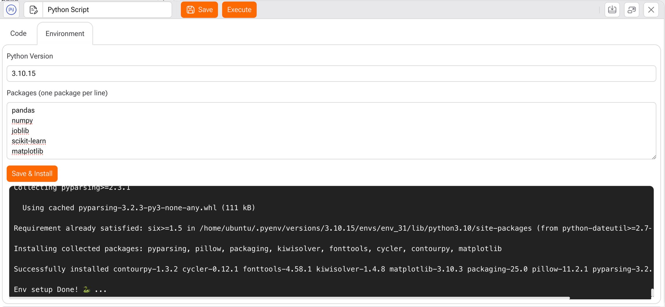 Esta tarefa permite executar scripts na linguagem Python, e a versão utilizada pode ser escolhida de acordo com as versões disponibilizadas pelo administrador do Gaio. As bibliotecas podem ser instaladas e gerenciadas por desenvolvedores do Gaio. Além disso, disponibilizamos uma classe chamada bucket que permite extrair e exportar dados que estão no banco ClickHouse que sua aplicação tem permissão para usar.