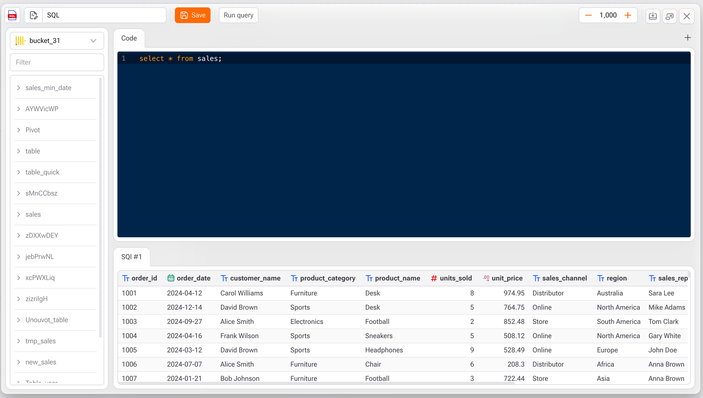 No canto superior esquerdo, selecione o bucket que contém as tabelas que você deseja consultar.