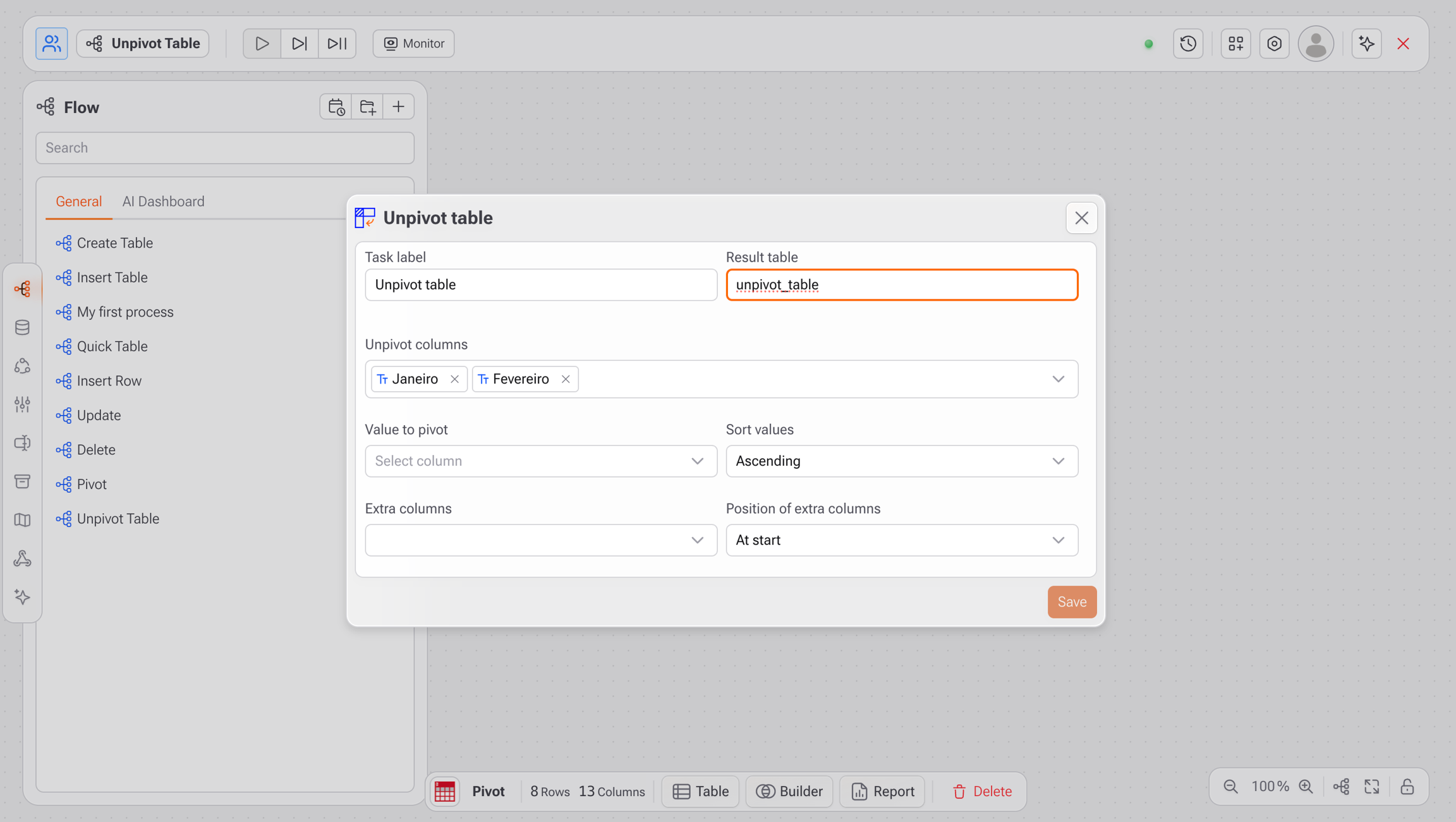 Acesse o menu: Tasks > ETL > Unpivot Table