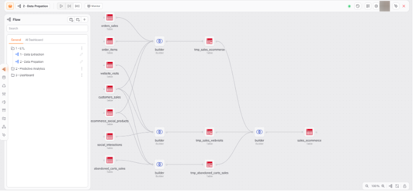 • Construir una tabla plana unificada llamada sales_ecommerce, que combine: