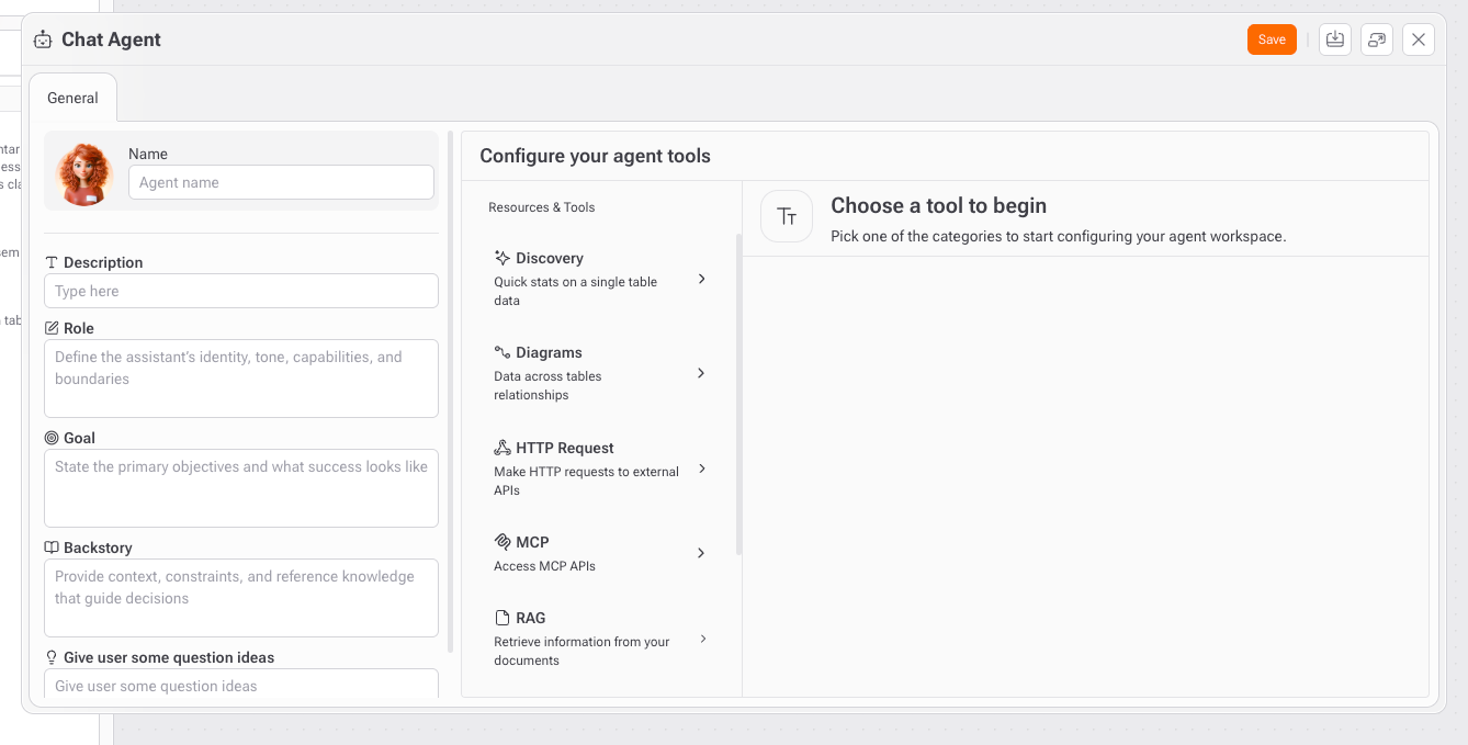 Una vez creadas las Herramientas y los RAG, el desarrollador puede ensamblar un Agente de Chat.