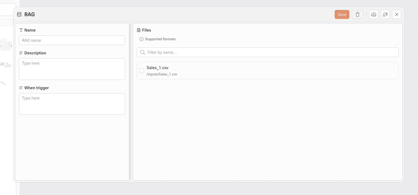 Un RAG no actúa por sí solo. Debe estar vinculado a un Agente de Chat para ser utilizado durante las conversaciones.