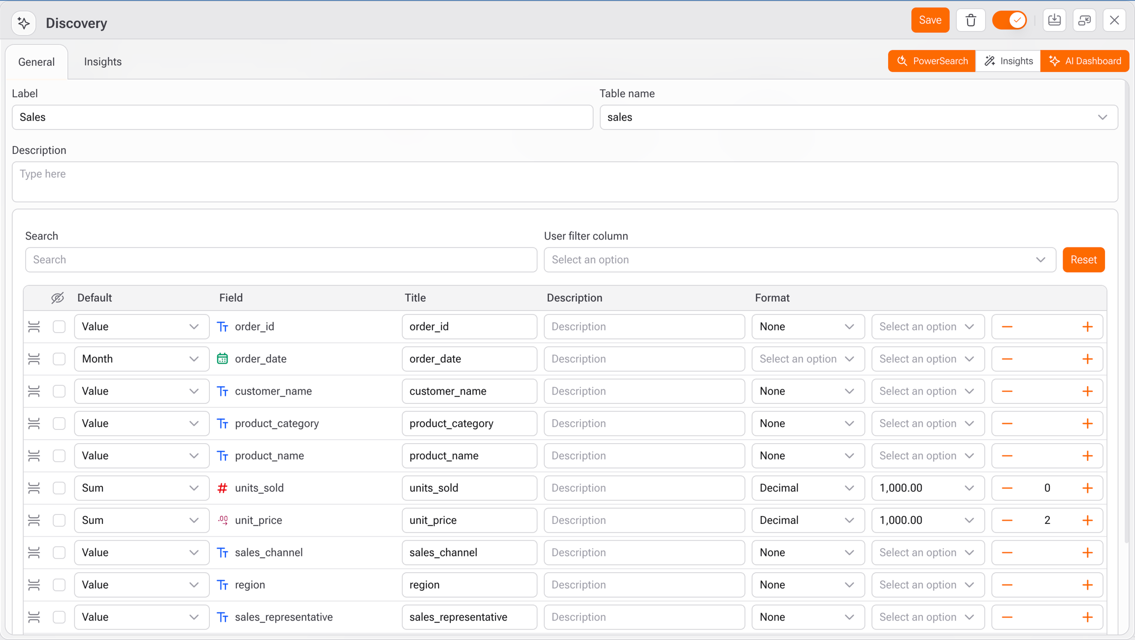 Antes de subir el archivo, marca la opción Descubrimiento de Tabla. Esto hará que la tabla esté disponible para Power Search y funcionalidades de IA.