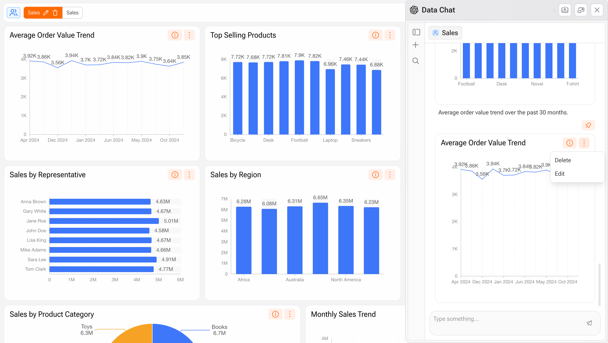 • Utiliza el Asistente de IA para generar automáticamente visualizaciones basadas en los datos cargados.