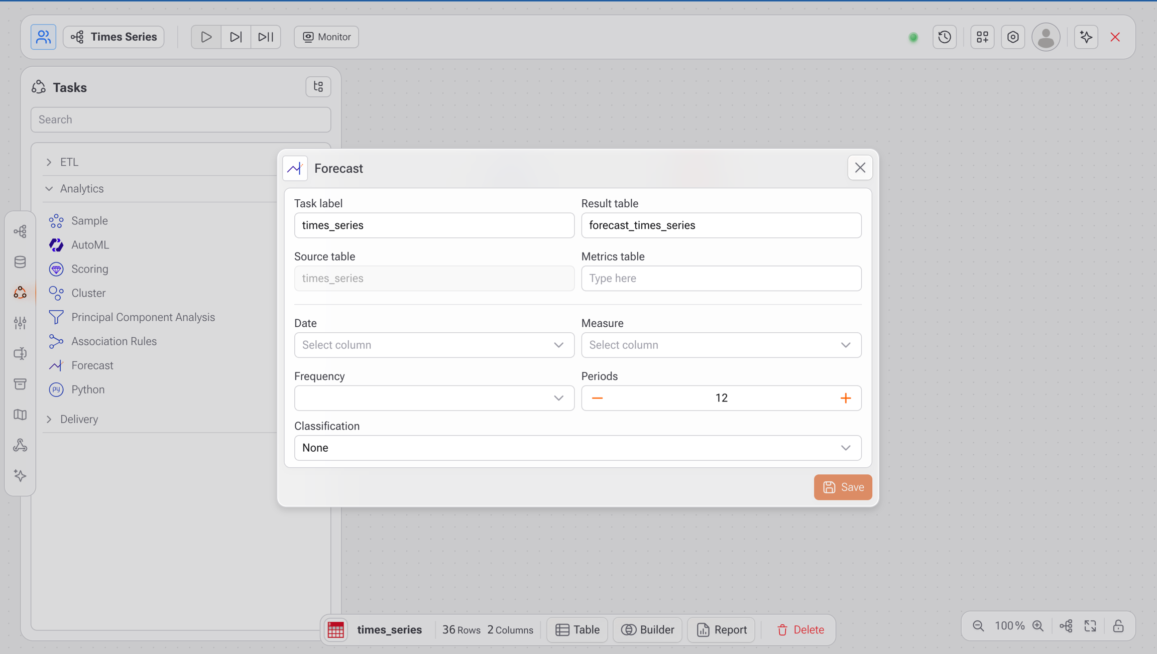 forecast_times_series).Tabla origen: Se completa automáticamente con la tabla seleccionada (ej.: