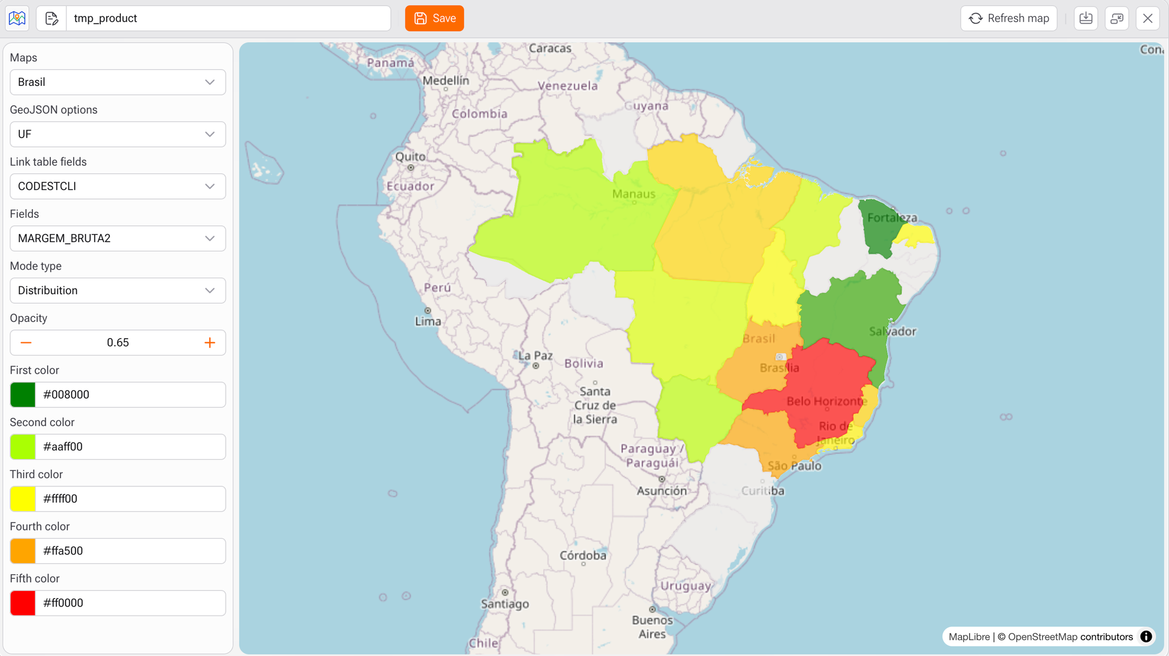 Another fundamental point, is that the table containing the data to be printed on the map, needs to have a geography column in the format that the map expects. For example, the map is by State and expects the name of the State in two letters (SP, RJ, MG). So, the table that we are going to deliver to the map must have a column in this format.